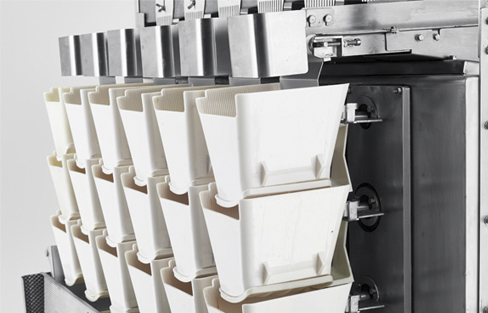 • Tolvas de 3 niveles que incluyen tolvas de memoria para aumentar la velocidad y la precisión.