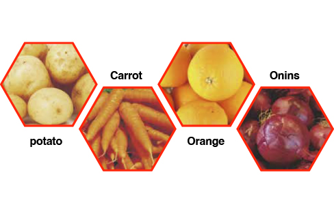 Patata, naranja, zanahoria, cebolla y productos agrícolas de gama completa.